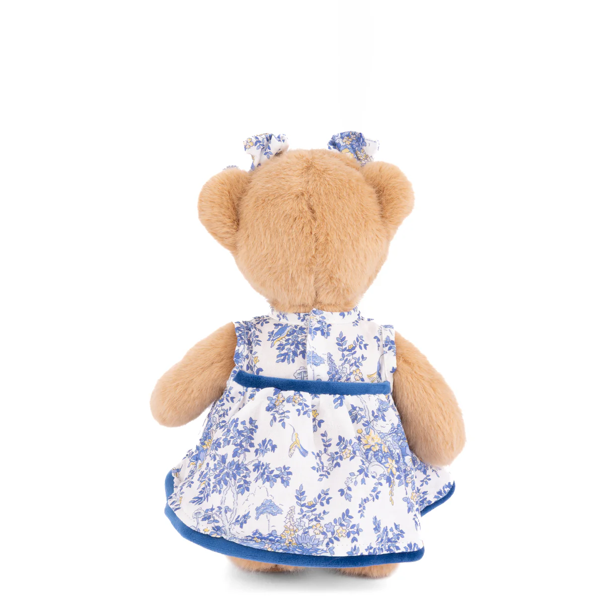 Lily to przepiękna Pani Misiowa o jasnobrązowym, króciutkim futerku ubrana w kwiecistą sukienkę w kolorze niebieskim. Mierzy ok. 22,5 cm.